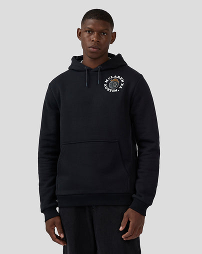 Introducing the Unisex Austin 24 Hoodie in Caviar Black! Show your support for McLaren at the Austin F1 race with this comfortable and stylish hoodie, featuring a unique graphic of a tyre called Papaya McTyre.