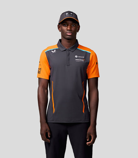 Official Mens NEOM McLaren Formula E Teamwear Polo Shirt - Phantom/Papaya